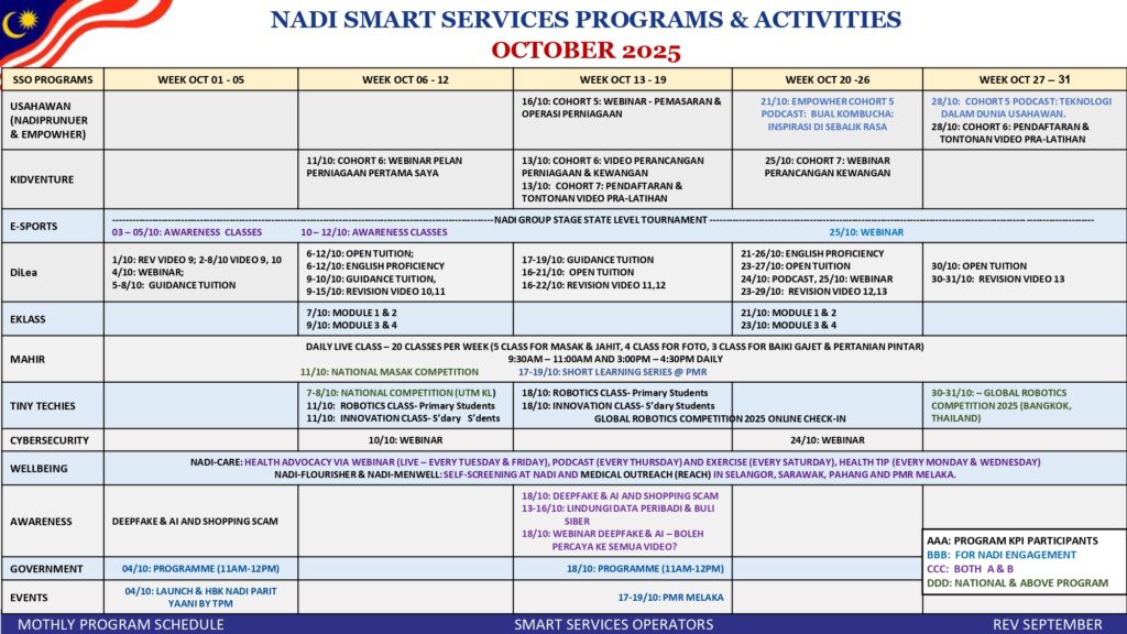 #NADI #SmartServices #October2025 #DigitalSkills #Cybersecurity #GuidanceTuition #Mahir #TinyTechies #Eklass #Wellbeing