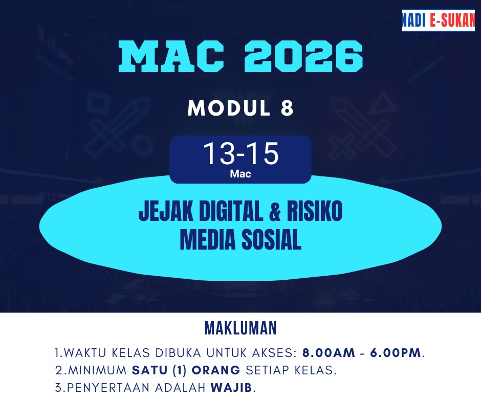 Jom sertai sesi Modul 8: Jejak Digital & Risiko Media Sosial untuk memahami dengan lebih mendalam tentang penggunaan media sosial secara selamat dan bertanggungjawab. 🌐🔐